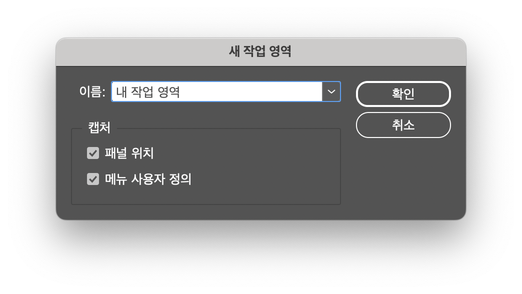 [창]-[작업영역]-[새 작업 영역]을 선택한다.