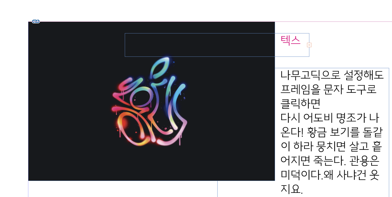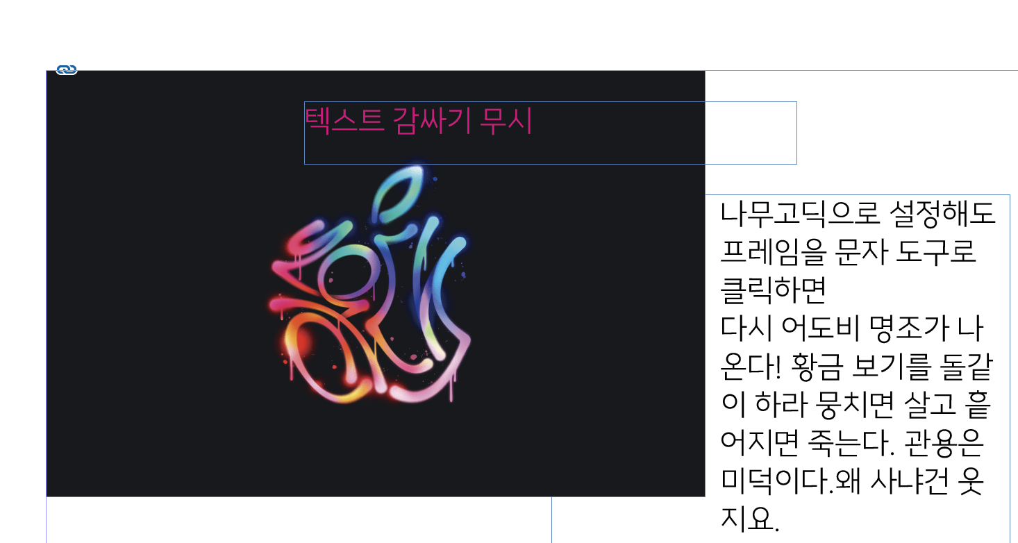 인디자인 텍스트 감싸기 옵션이 설정된 이미지