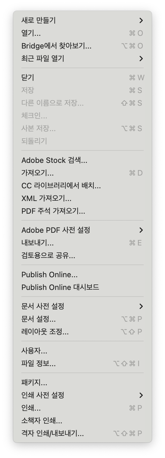 어떤 경우에 인디자인 저장이 비활성화되나?!