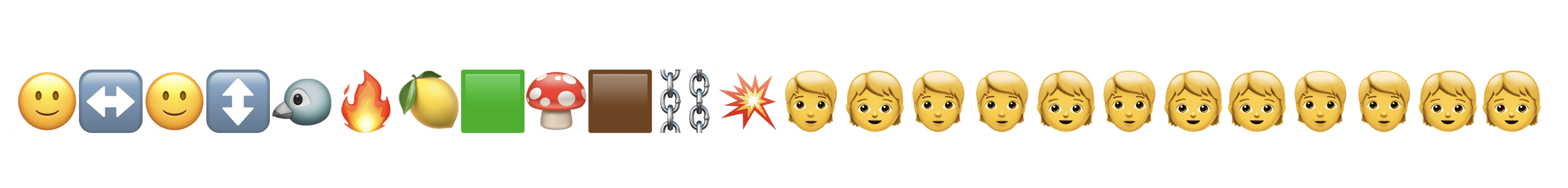 그런데 바뀐 이모지를 아이폰에서 복사해서 그대로 붙여 넣기 했더니 재미있는 이모지가 새롭게 탄생했다. - 🙂↔️🙂↕️🐦🔥🍋🟩🍄🟫⛓️💥🧑🧒🧑🧑🧒🧑🧒🧒🧑🧑🧒🧒