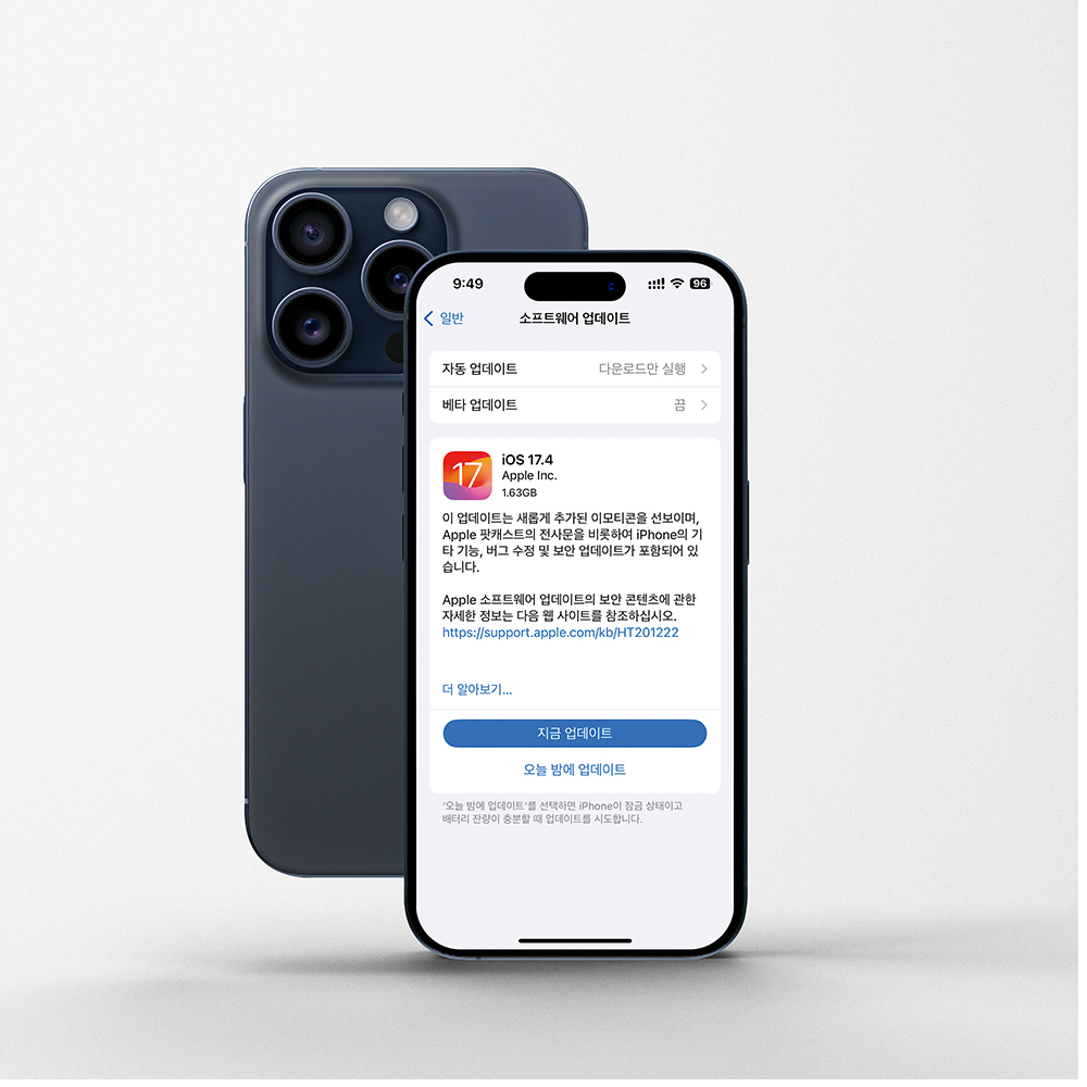 애플의 iOS 17.4 가 업데이트 됐다. 업데이트된 특징들 중 꼭 알아야 할 5가지 신기능에 대해 알아보자. iOS17.4의 설치용량은 1.63G이고 아이폰의 용량은 최소 8G 이상의 여유공간이 있어야 설치가 가