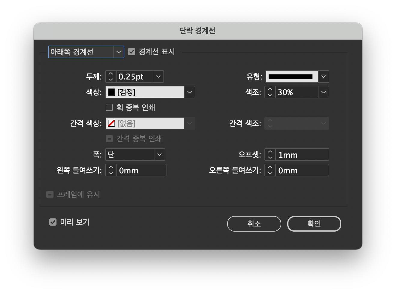 인디자인에서 사용하는 단락경계선은