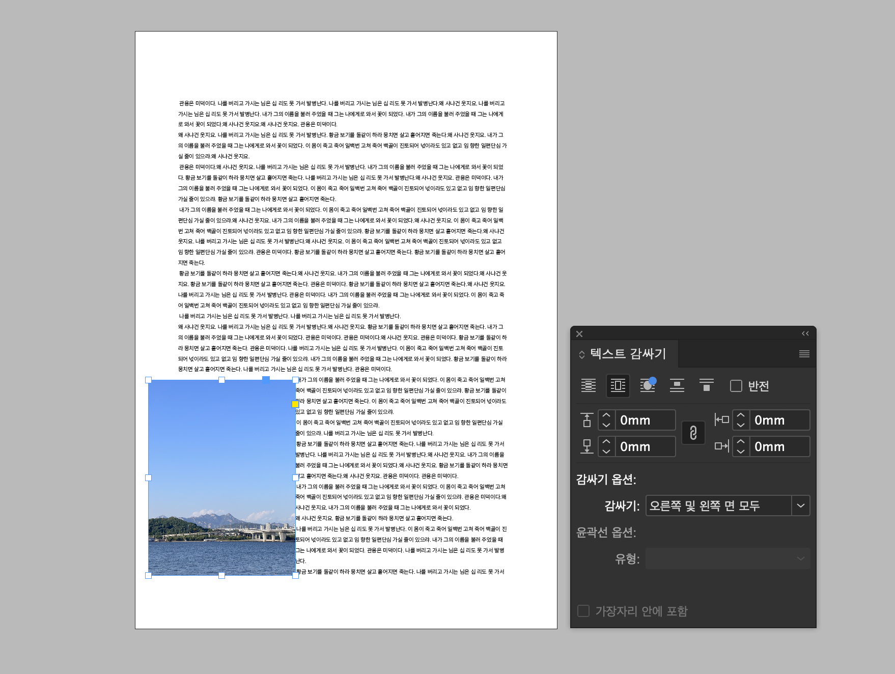 인디자인 텍스트감싸기 옵션이 한번 적용된 이미지는
