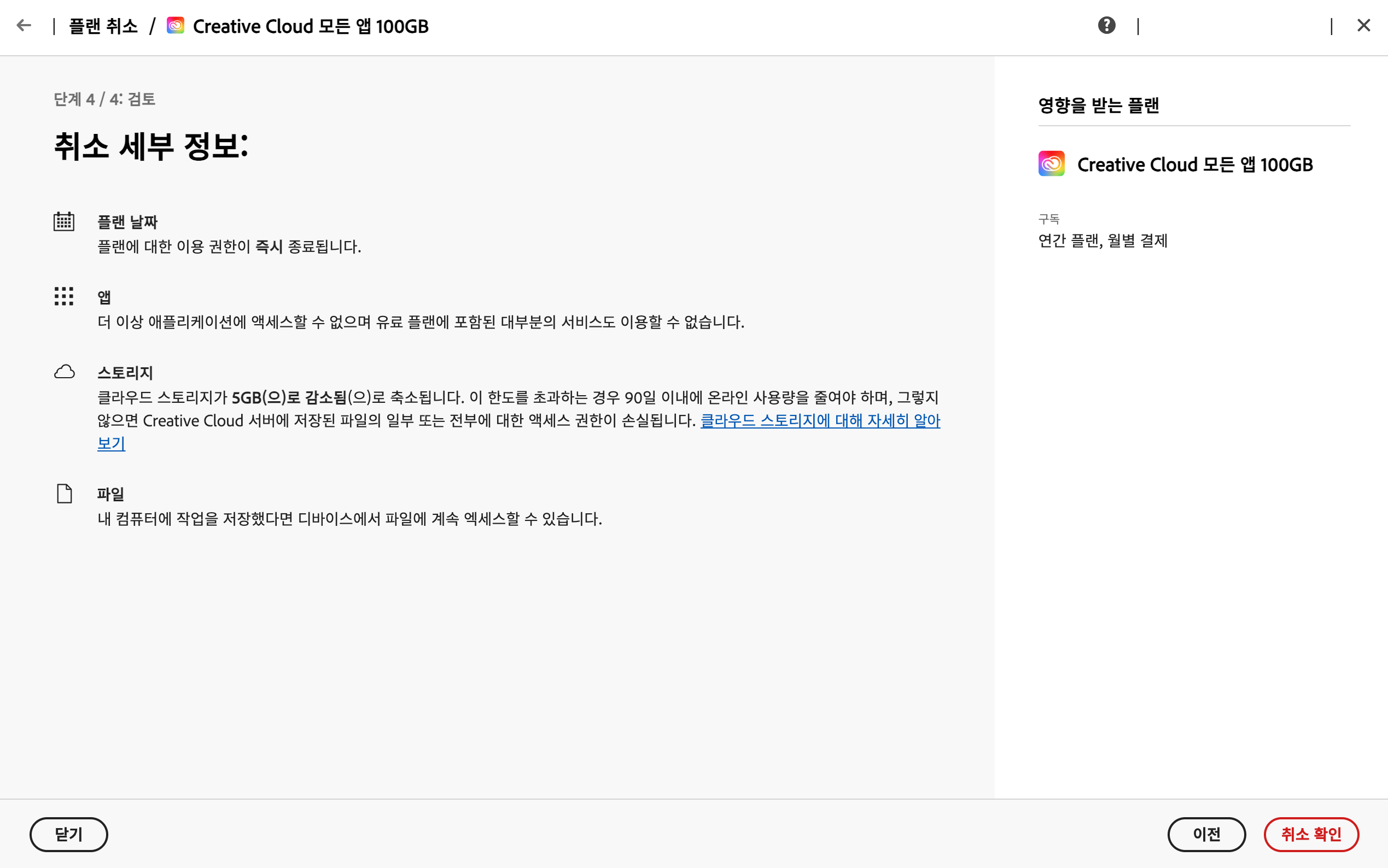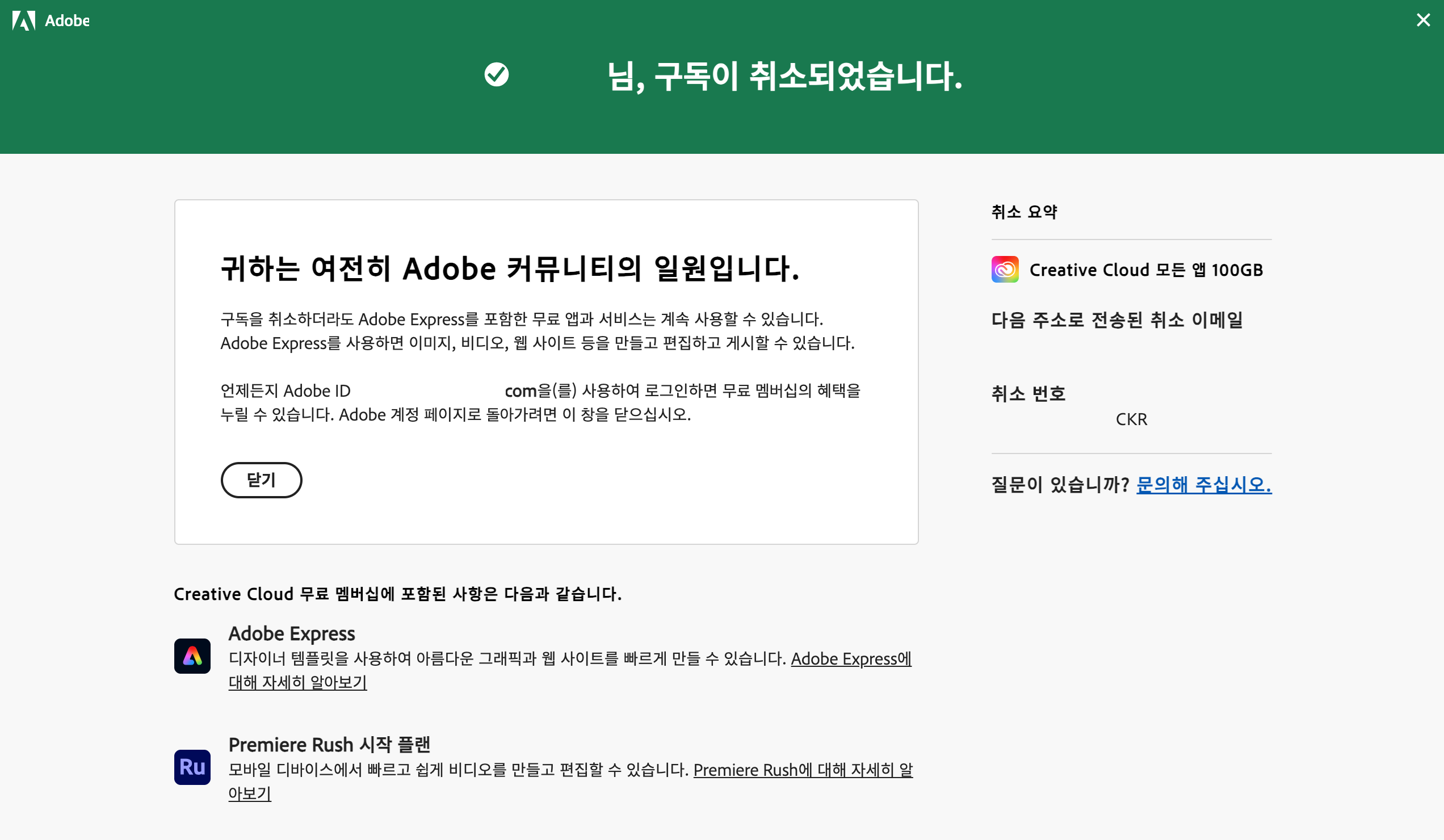 어도비 구독형 프로그램의 경우 구독을 해지할때