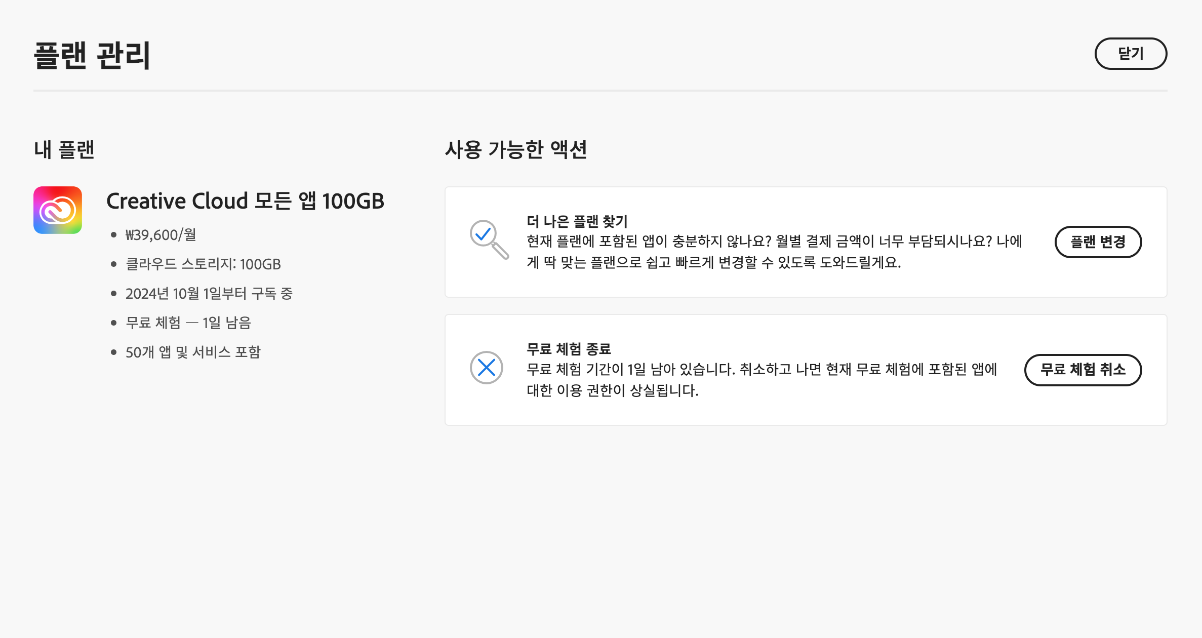 어도비 무료체험 취소하는 방법은 쉬우니까