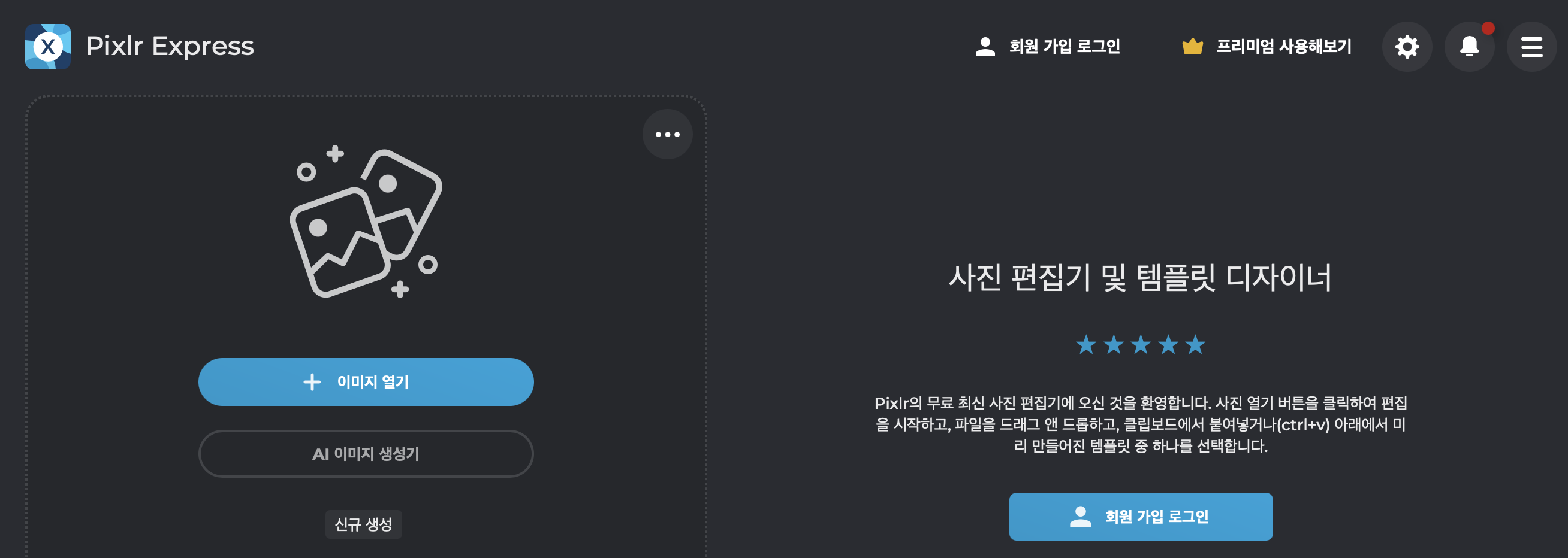 회원가입만 하면 무료로 이미지를 편집할 수 있다.