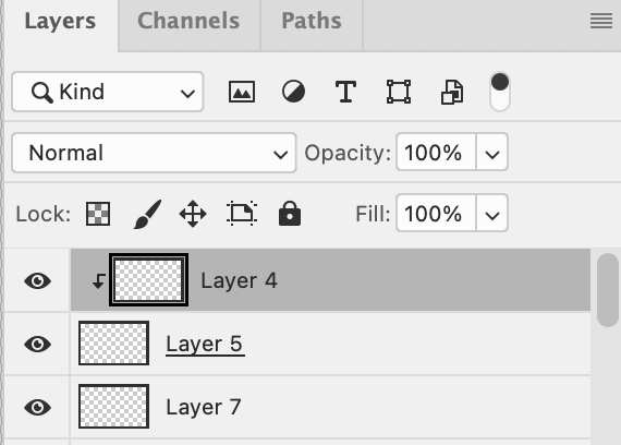 포토샵 레이어 기능 중 clipping mask 모드는 레이어 위에서 opt(alt)키를 누르고 클릭을 하면 적용이 되는데