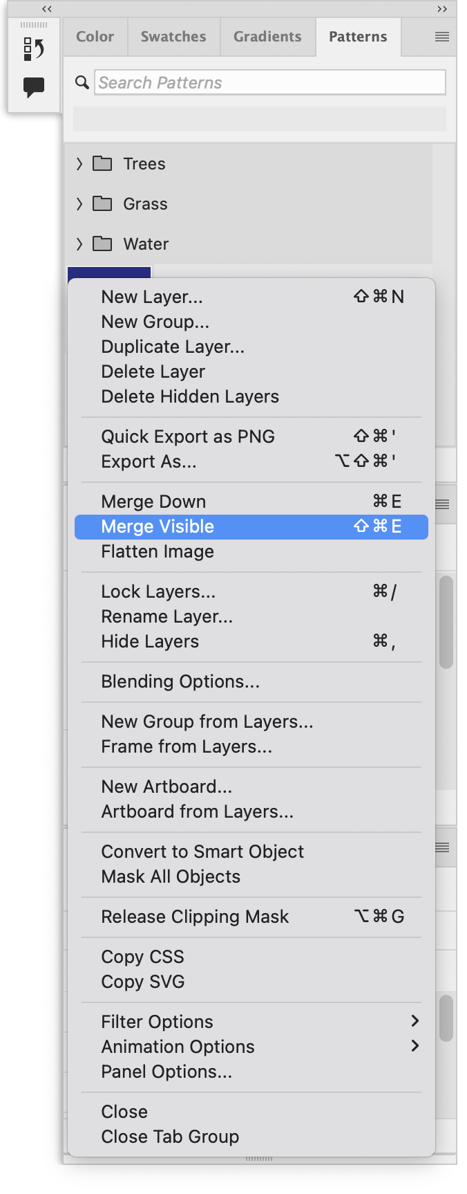 merge visible 로 cmd+shift+E를 누르면 된다.