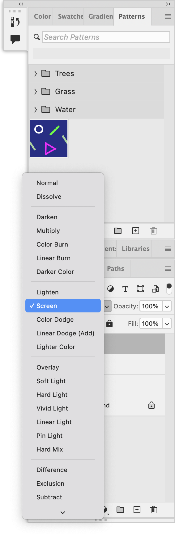 자주 사용하는 블랜딩 모드 중 Screen, Overlay, Soft light, Color Dodge, Luminosity 이렇게 5가지가 더 있다.