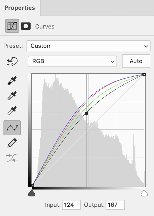 컬러별로 red, green, blue 각각의 그래프를 조절해서 이미지의 밝기나 대비를 조절할 수 있다.