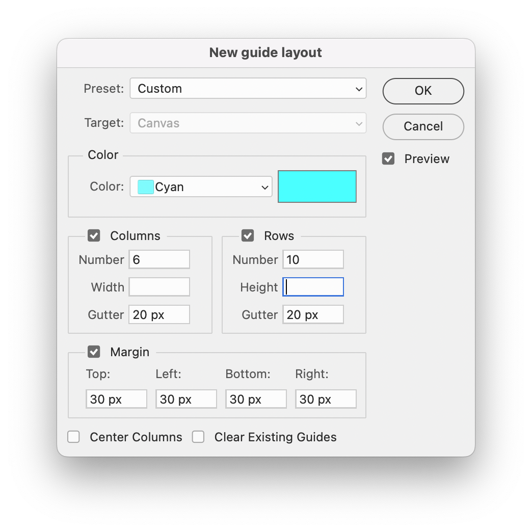 디자인을 하기 전에 그리드를 만들어 놓으면 편한데