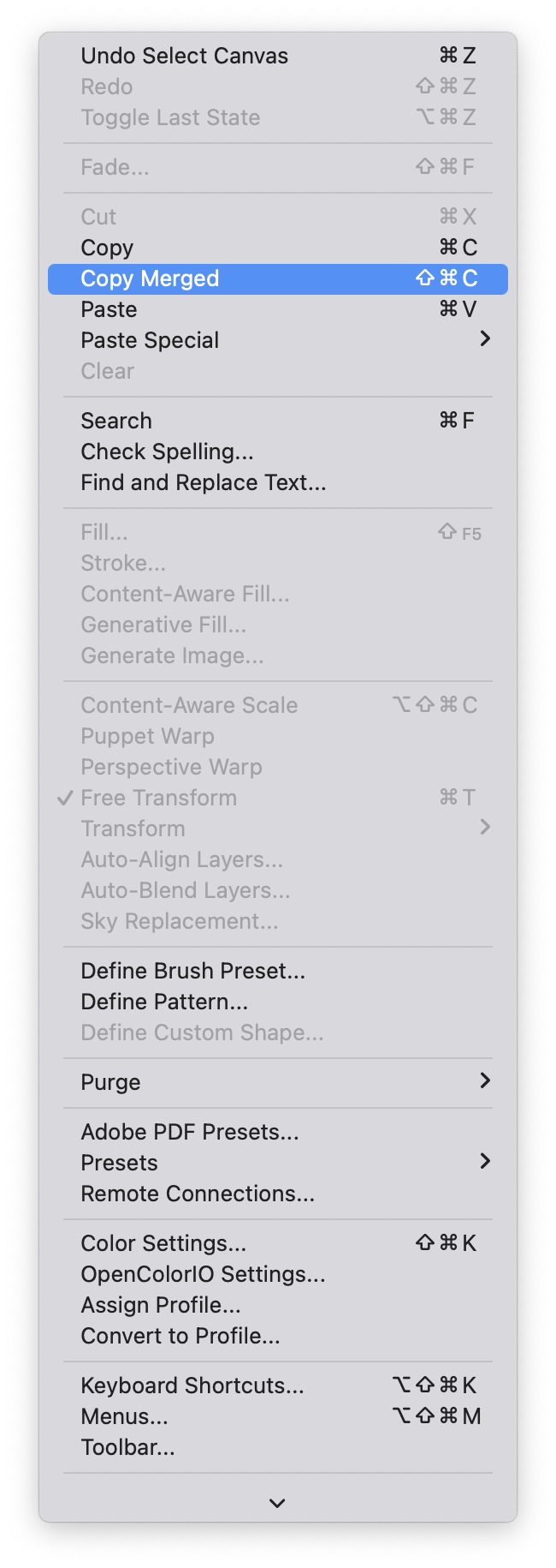 cmd+shift+C를 누르면 화면에 보이는 레이어 전체가 복사된다.