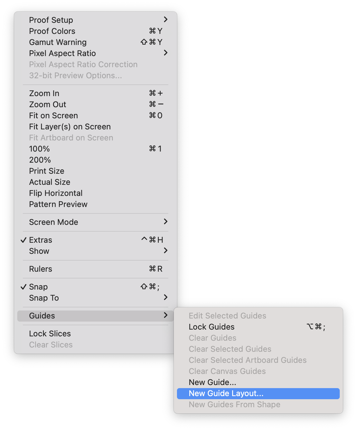 [view]-[guides]-[new guide layout]을 선택해주면 된다.