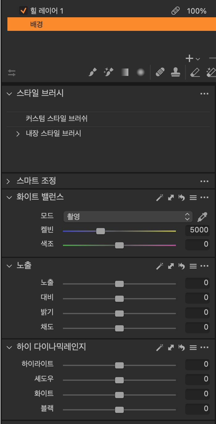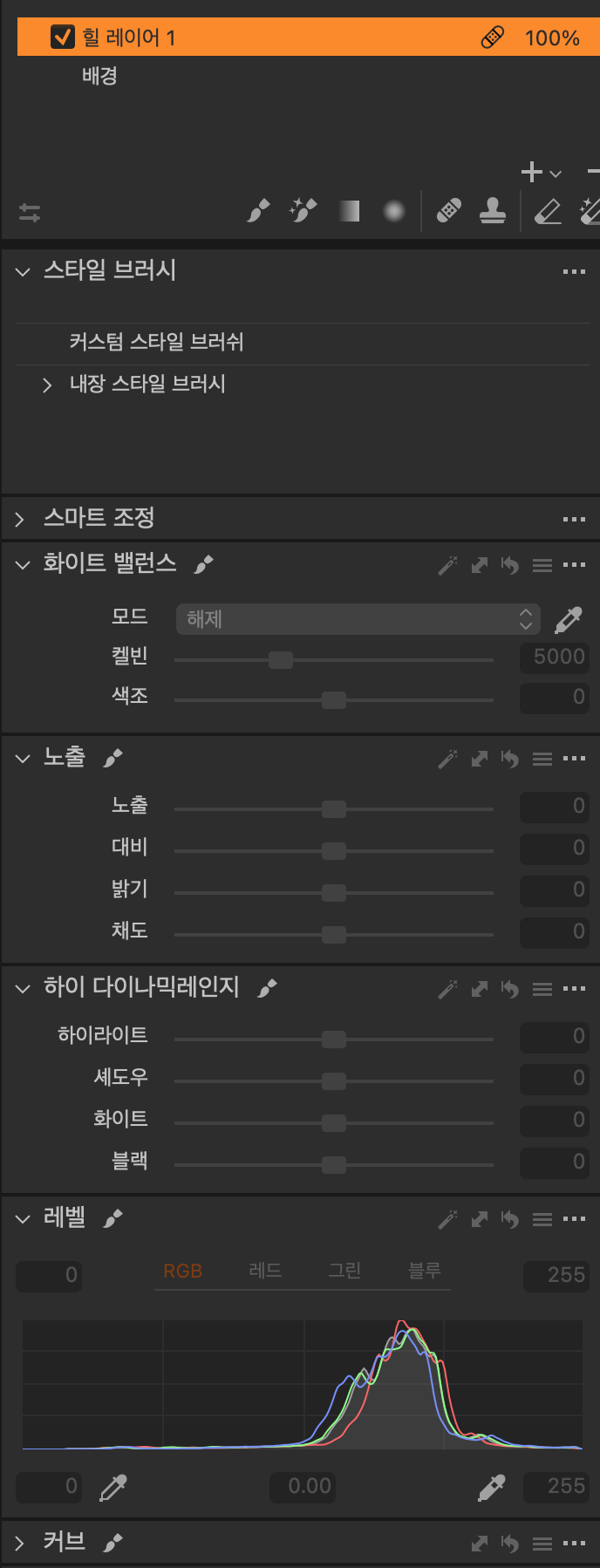 기능은 평소에 내가 라이트룸에서 사용하던 기능은 왼만하면 다 쓸 수 있으니까