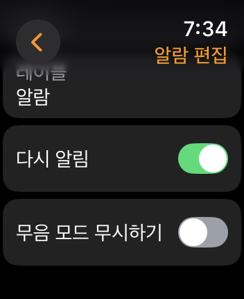 애플워치OS 11.4에서는 '무음 모드 해제(Break Through Silent Mode)' 옵션이 각 알람 설정에 추가되었다.