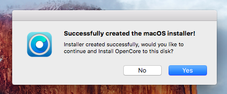 Create macOS Installer 팝업이 뜨면 yes를 눌러 다음으로 진행한다.
