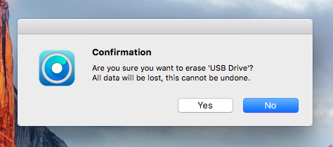 연결된 USB를 지운다고 한다. Yes를 클릭한다.