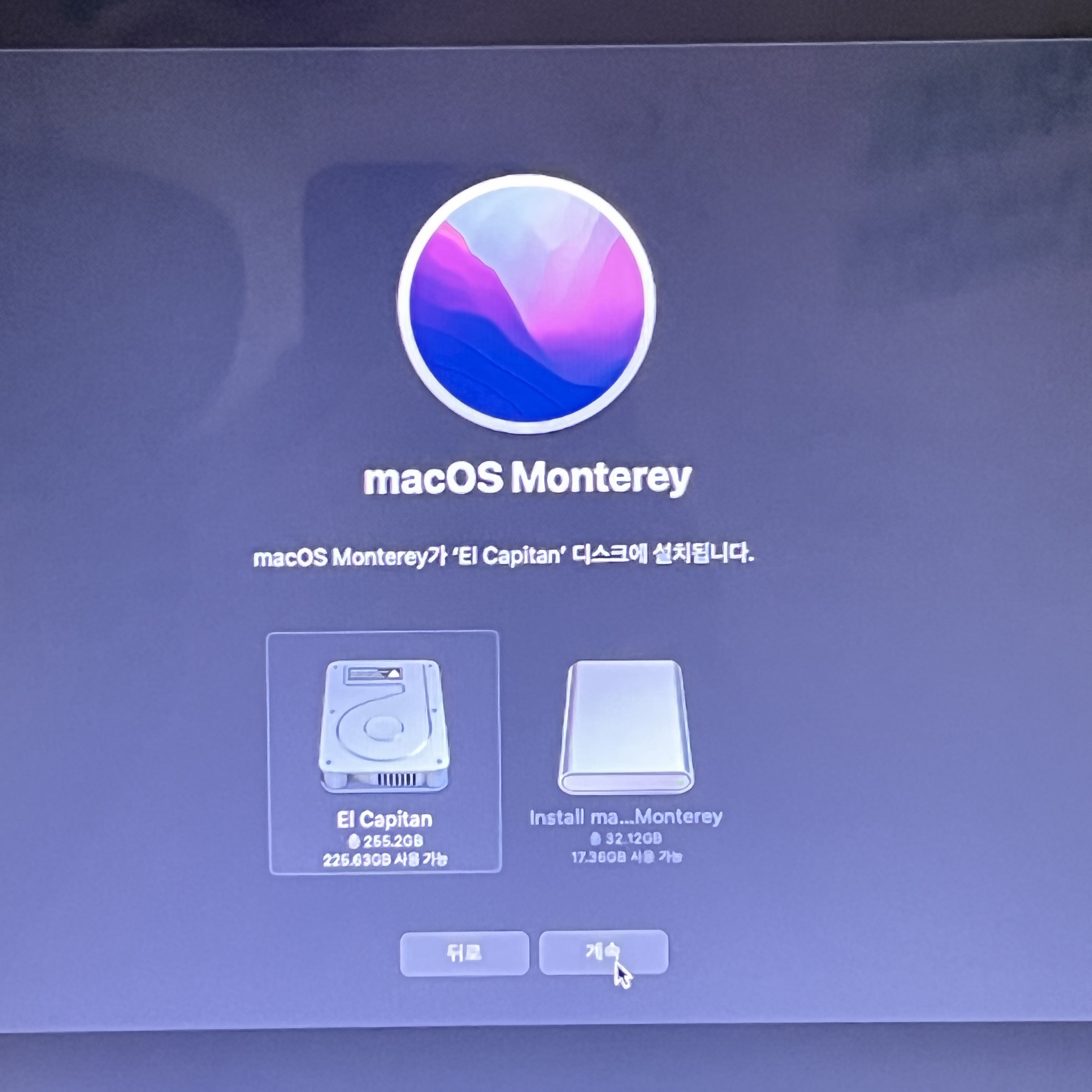 El Capitan과 install macOS Monterey 두가지 옵션이 다시 뜬다.
