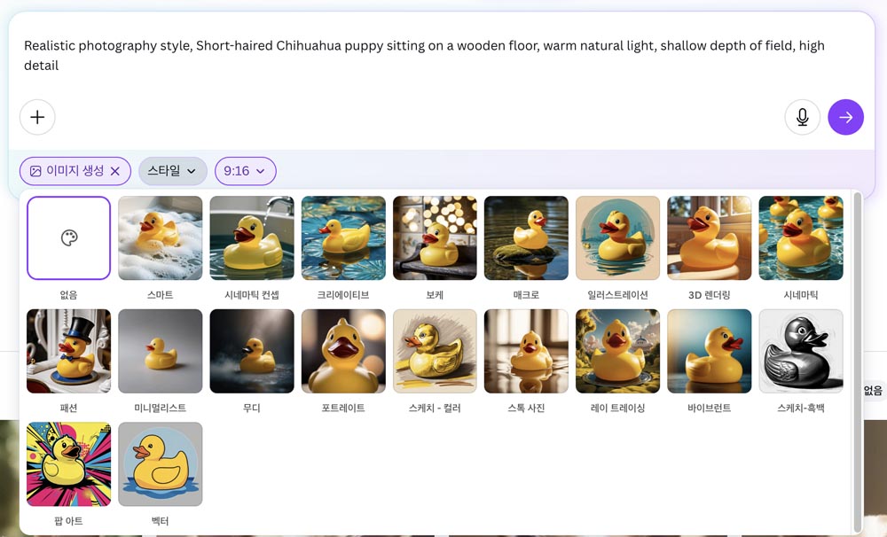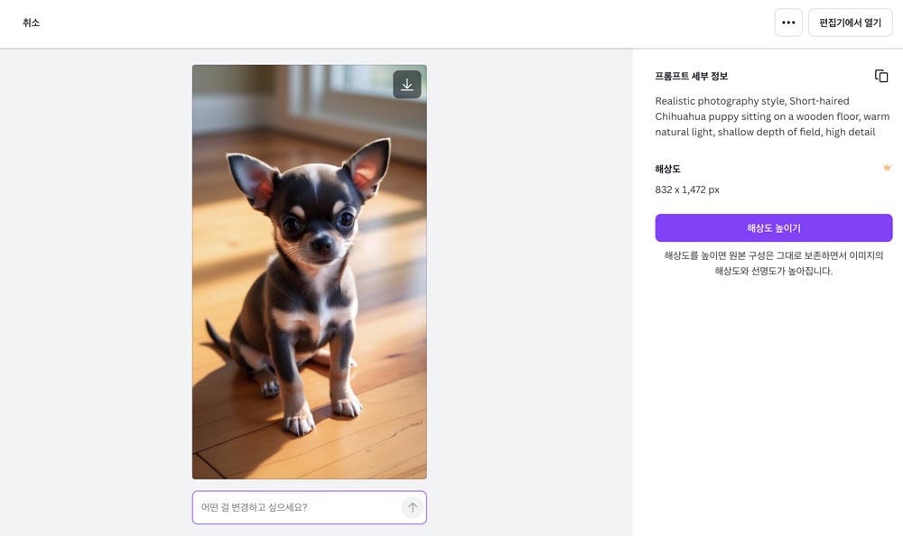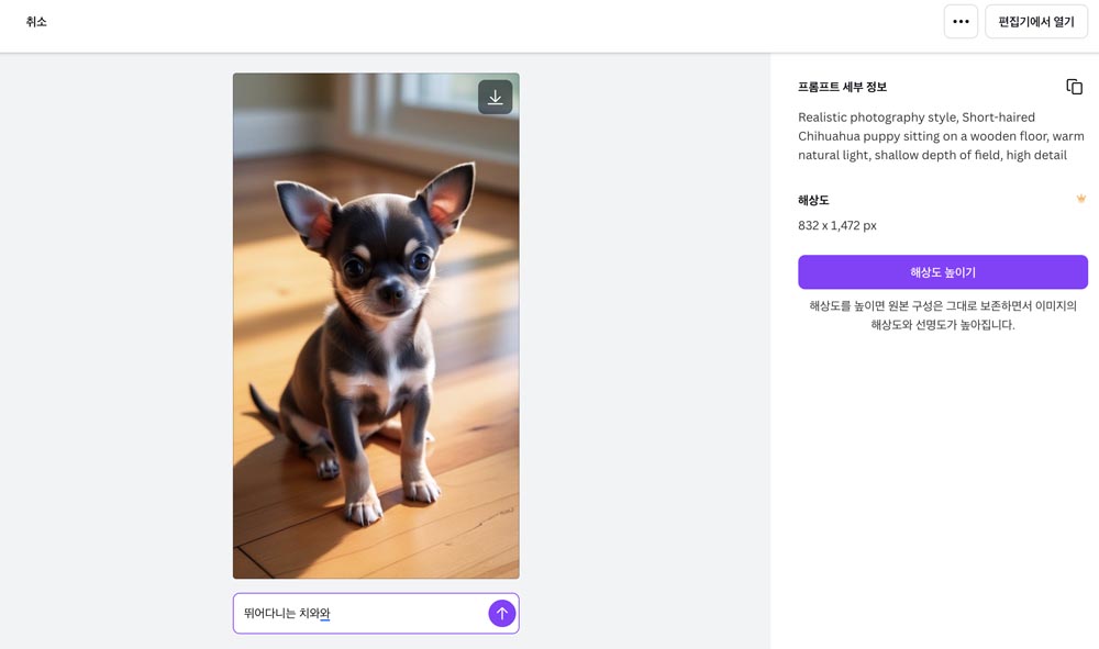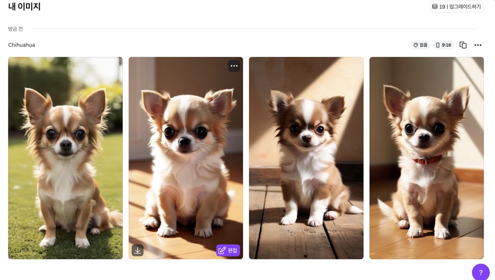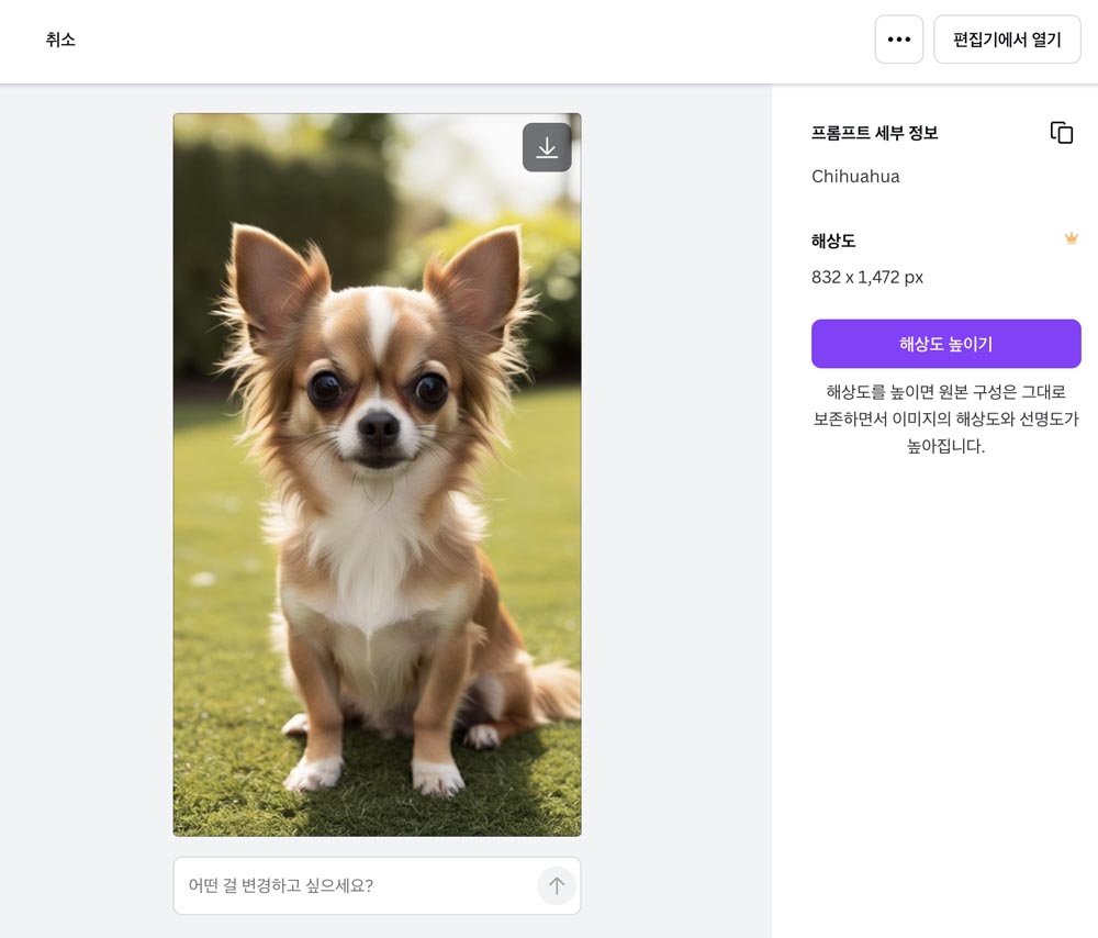 영어로 Chihuahua를 입력했는데 나중에 알고보니 캔바ai는 한글도 잘 인식을 하더라.