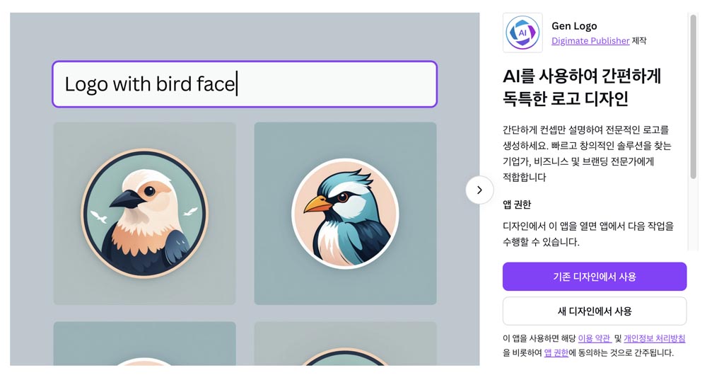 오른쪽에 있는 'AI를 사용하여 간편하게 독특한 로고 디자인'을 활용해 봤다.