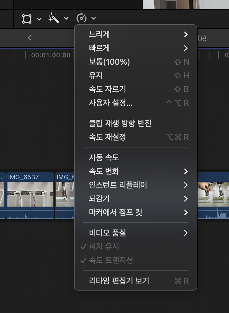 파일널컷 클립 영상 반대로 재생하는 방법