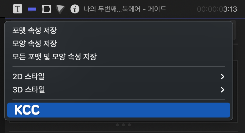 파이널컷 텍스트스타일 메뉴에 있는 항목이 사라진다.