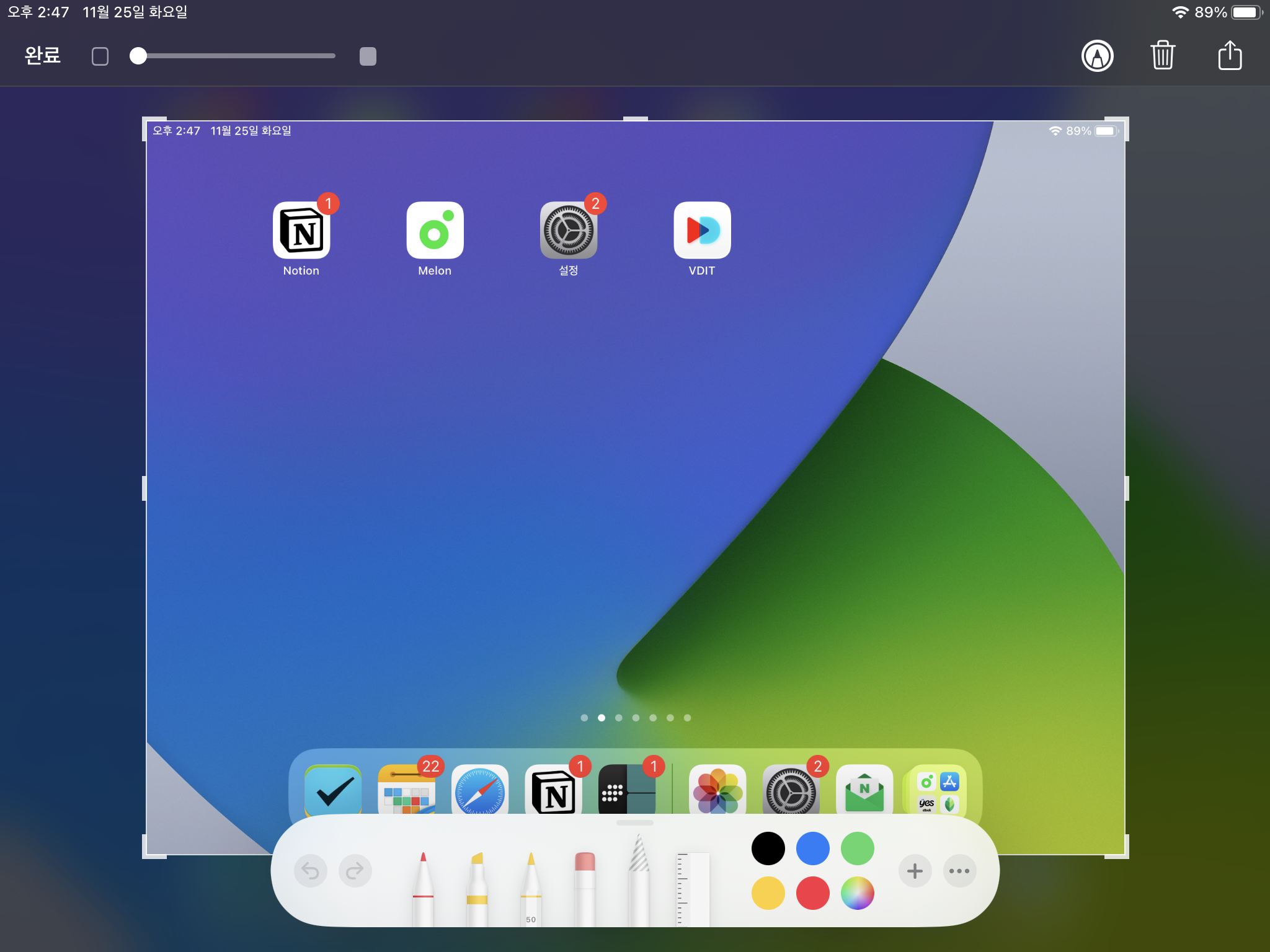 아이패드에서 보통 2개의 버튼을 동시에 눌러 캡처를 할 수 있지만