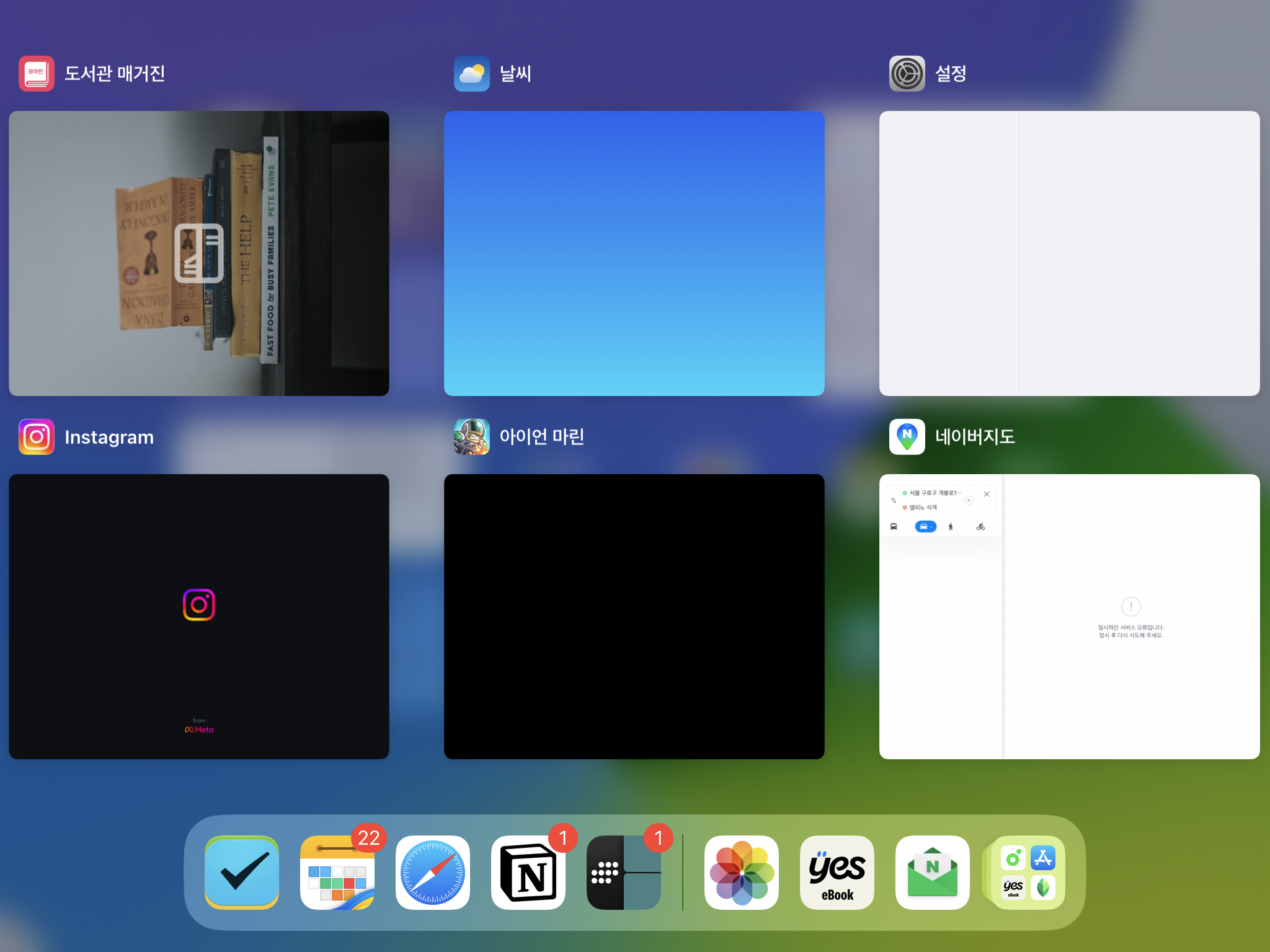 fn+ 방향키 위 버튼을 눌러주면 위 화면 처럼 실행 중인 화면을 모두 볼수 있다