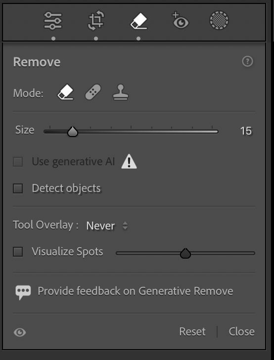 라이트룸에서 리무브툴(단축키Q)을 사용하다가