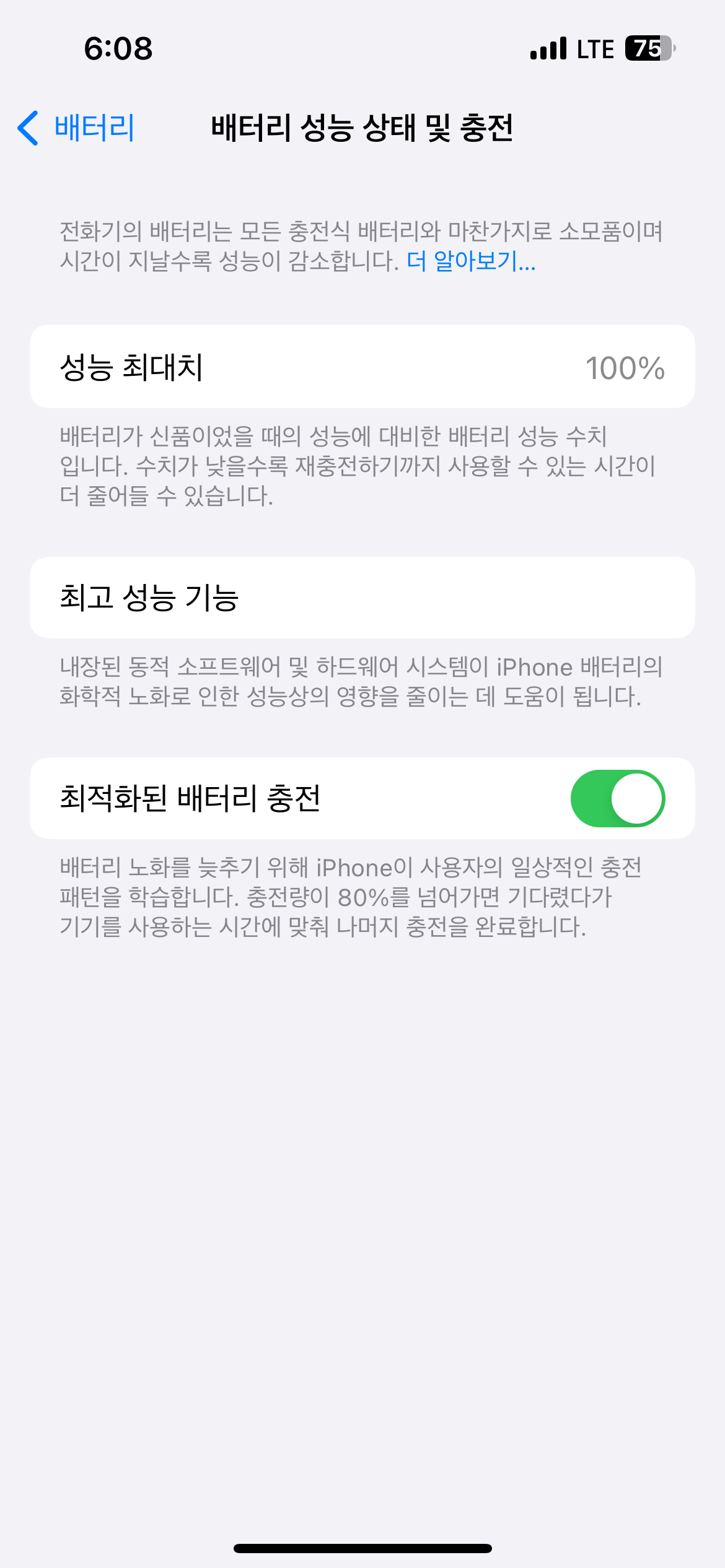 교체를 했으니 당연히 배터리 성능 최대치는 100%