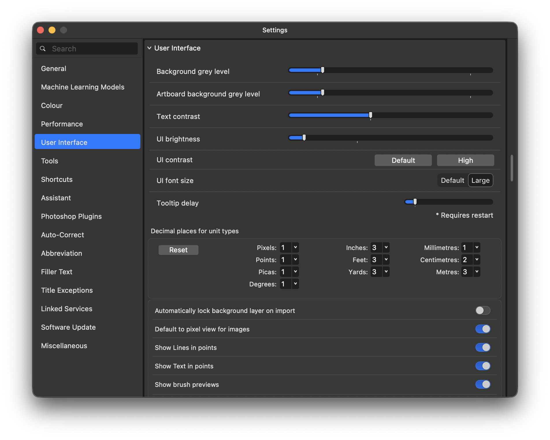 [User Interface]-[UI font size] Large로 설정을 해두자!