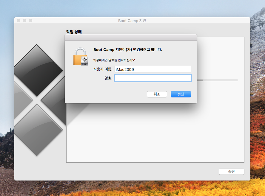 [유틸리트]-[bootcamp지원]을 다시 실행시키고