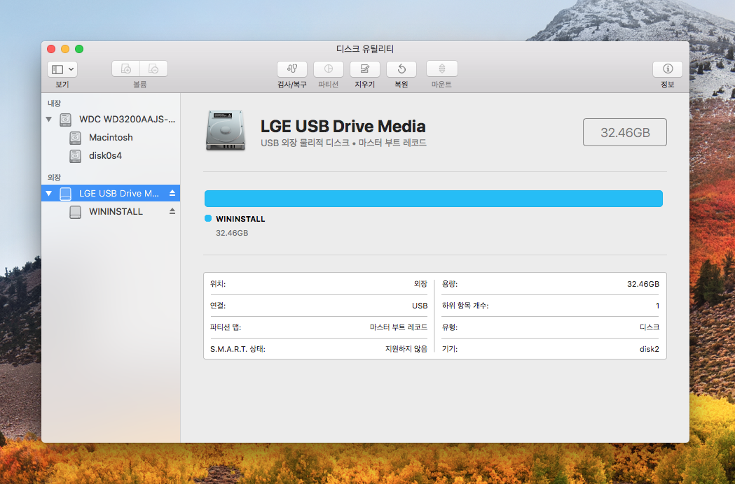 맥용량을 80G로 잡아놓고 나머지 용량은 모두 윈도우로 할당.