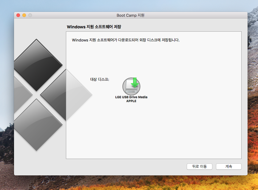이번엔 위에 있는 'apple에서 최신 windows 지원 소프트웨어 다운로드'만 체크한 후 '계속'을 클릭한다.